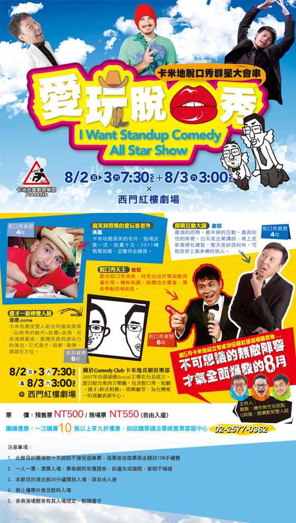 最後站立幫有在香港演出唷http://www.comedy.com.tw/node/652,如果對脫口秀有興趣的朋友可以介紹自己在香港的朋友去看見一下台灣人的文化藝術唷!